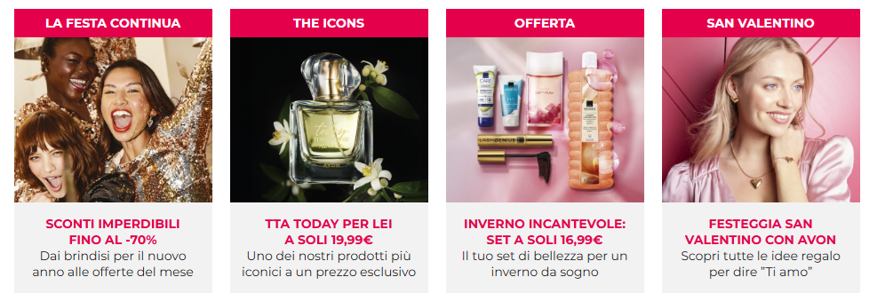 Clicca qui sotto per scoprire tutti i cataloghi Avon attualmente disponibili.