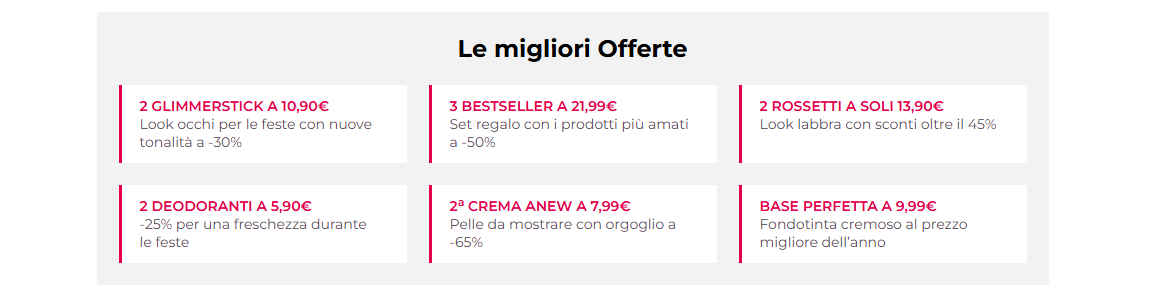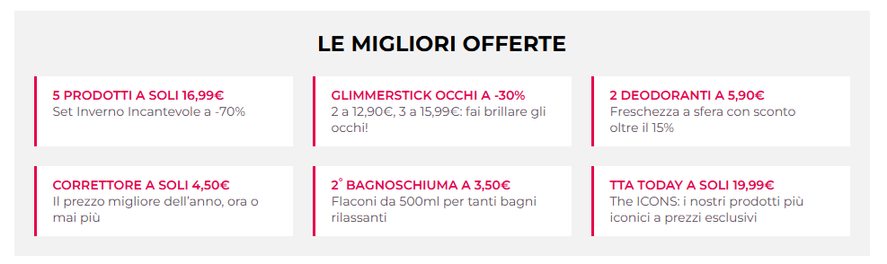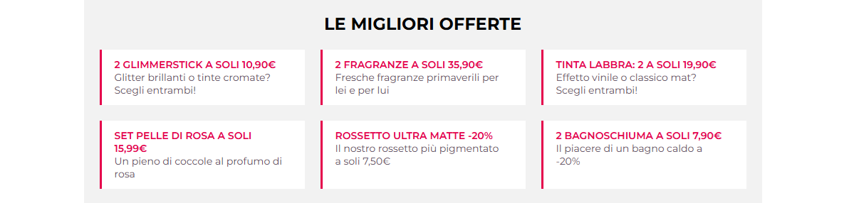 Potresti non trovare alcuni prodotti sul sito perché esauriti o perché non sono disponibili nella campagna in corso.